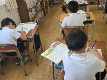 3年生の国語の様子です。しっかりあいさつをして、しっかりノートをとっていました。