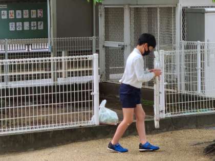 飼育委員の児童が、うさぎの世話をしていくれています。