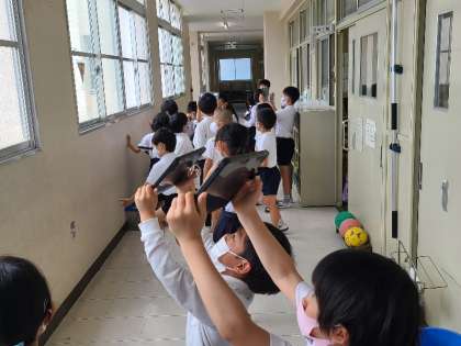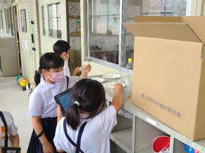 3年生が、羽化したモンシロチョウをタブレットで撮影する等して観察していました。