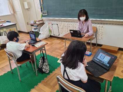 なかよしの様子です。タブレットを活用して、漢字の学習に取り組んでいました。