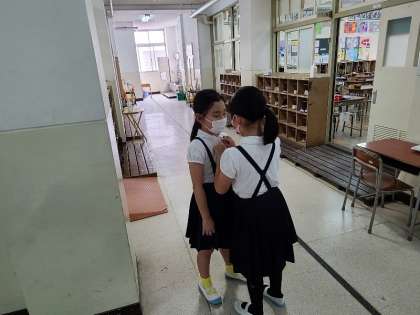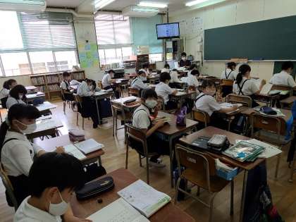 教室にたくさんいるのは授業ではありません。プリントのやり直しをしているようです。頑張れー。