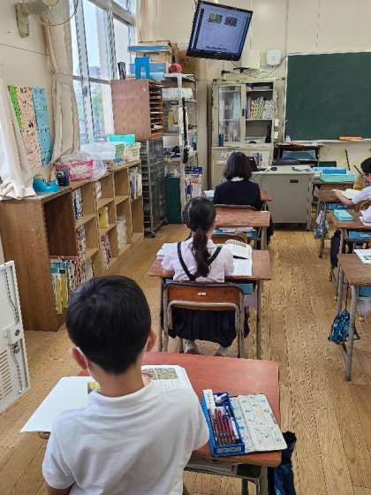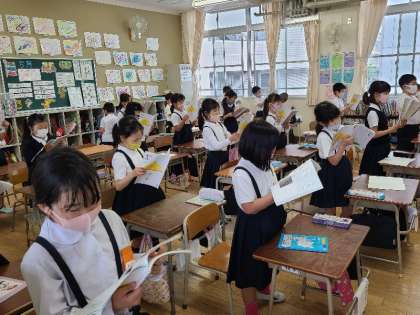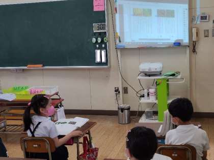1組は一斉読みをしていました。2組はデジタル教科書で読んでいました。