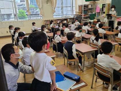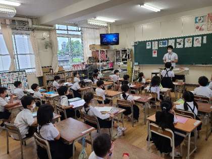 朝の様子です。1年生の学活の様子です。健康観察や「心の天気」を入力していました。