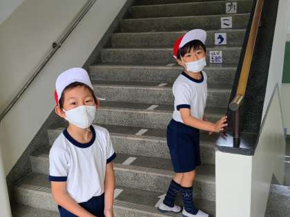 3年生が体育の授業から教室に戻ってきました。「先生、マットした。楽しかったよ。」と教えてくれました。