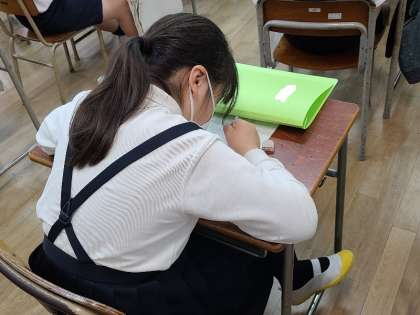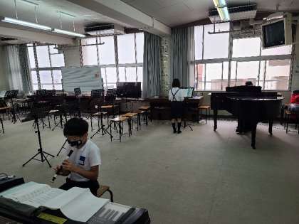 5年1組の音楽の様子です。リコーダーのテストをしていました。