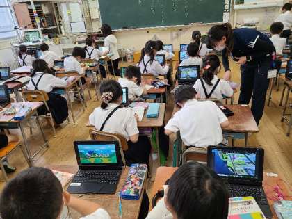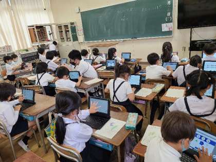 2年生の様子です。1・2組ともなすとししとうの観察記録をまとめていました。