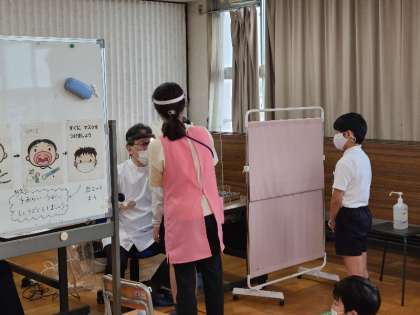 今日は2・5・6年の耳鼻科検診が行われました。写真は5年生の様子です。
