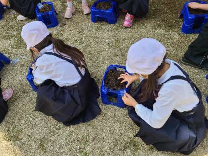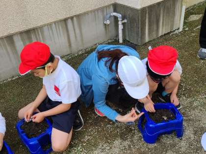 1年生が「あさがお」の種を植えました。今日から、お水をあげて成長を観察します。