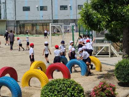 梅雨も一休みでしょうか。素晴らしい青空です。子どもたちも元気に遊んでいます。