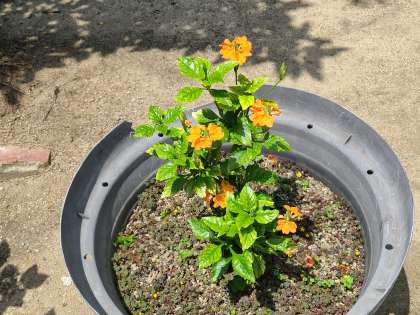 クロッサンドラです。つやのある葉と対比してオレンジ色の花がとてもきれいです。