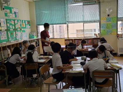 2年1組の図工、4年1組と6年2組の国語の様子です。