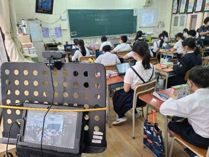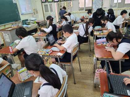 6年1組の図工の様子です。テープカッターを作成します。今日はそのデザインを考えていました。6年生でもTeamsを活用して、欠席している児童が参加できるように