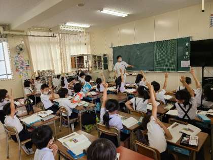 2年生の様子です。1・2組とも、始業の挨拶をしっかりと行い、授業中は積極的に手をあげて発表していました。