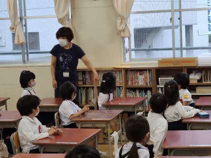 1年生の様子です。健康観察や学級文庫のお話をしていました。
