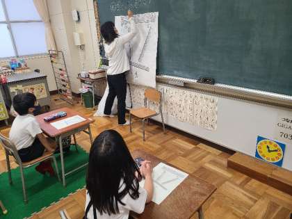 なかよしの様子です。算数で長さについて学習しました。
