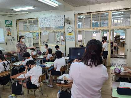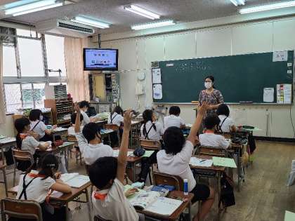 5年2組の英語の様子です。誕生日にほしいものをたずねたり答えたりしていました。欠席しているお友だちもTeamsで参加していました。