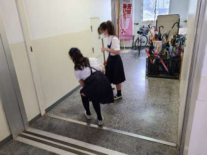 美化委員の児童がエレベーターホールの掃除をしてくれています。また、「おはようございます。」と気持ちの良い挨拶をしてくれました。本当に素敵な天小っ子です。