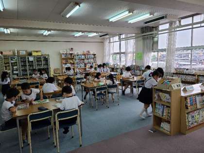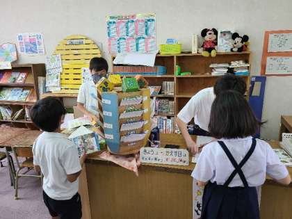 今日もたくさんの子どもたちが来館してくれました。図書委員の児童も「消毒お願いします」の声をかけや貸し出し事務等しっかりと役割を果たしていました。