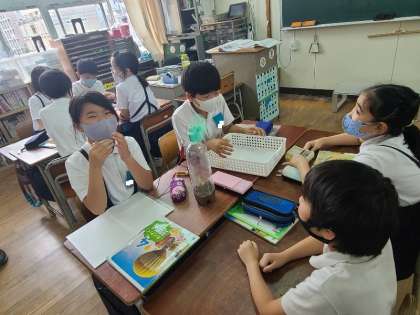 2組は理科の様子です。扇風機をまわす実験で、電気の働きについて学習していました。