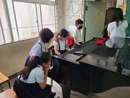 音楽室でピアノを弾いたり、先生とお話してすごしています。
