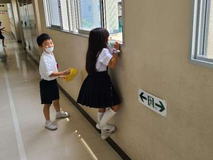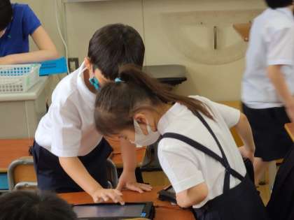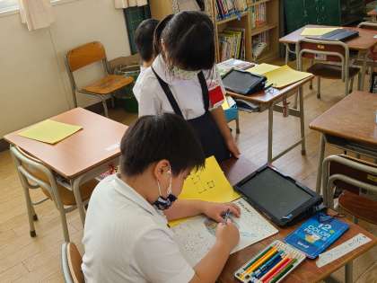 1年生の様子です。次の時間に使うタブレットの確認や自主学習などをしてすごしていました。