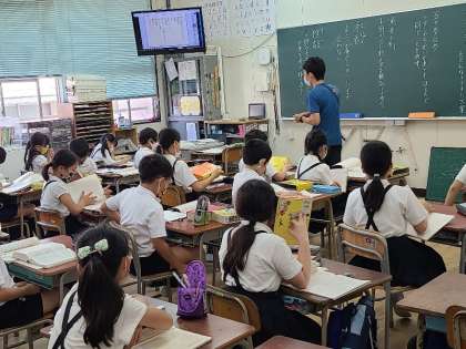 1組は国語で、辞書を活用して故事成語について学習していました。
