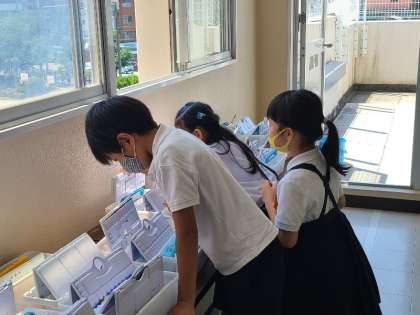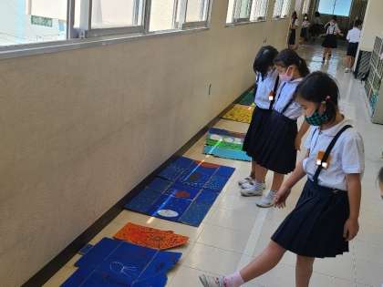 3年生の図工の様子です。「ペタペタひらくと」というテーマで、段ボール紙を開いて絵を描きました。段ボールを閉じた状態や開いた状態をイメージして描いています。子どもたちが絵の説明をしっかりできることに感動しました。