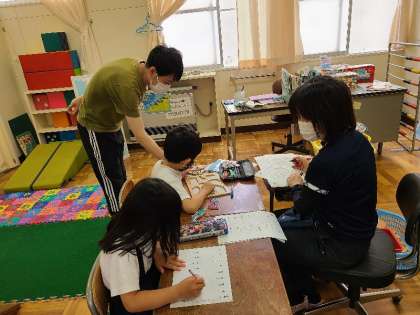 なかよしの様子です。いろいろな教具を使って楽しく学習していました。