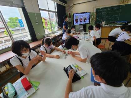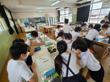5年2組の理科の様子です。植物の発芽の様子を観察してきました。今日はそのまとめの学習をしていました。今までの観察記録をしっかり見て話し合っていました。