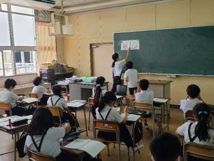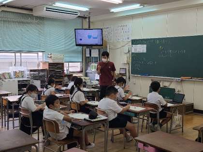 4年1組の算数の習熟度別授業の様子です。「0.1Lより少ないかさを少数で表そう」が課題です。0.1Lを10等分するとどうなるのか考えていました。