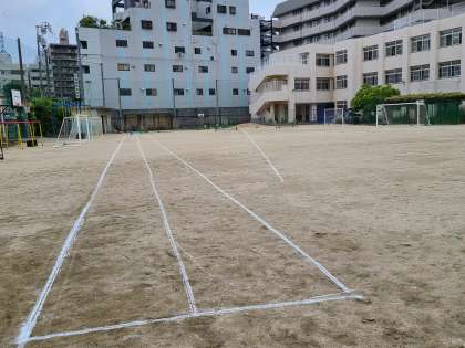 今日は5年生の新体力テストです。昨日から準備をしましたので、朝の運動場は使用禁止です。