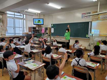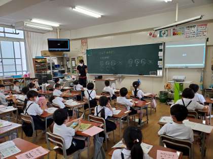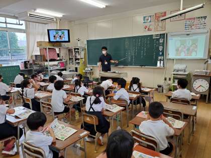 写真上:1組の国語の様子です。ねっこやきってなど、小さい「つ」について学習しました。