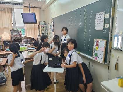 5年2組の教室の様子です。欠席している児童とTeamsでお話していました。