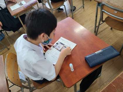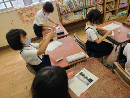 2年1組のせいかつかの様子です。町たんけんの写真を貼って、説明文を書きました。