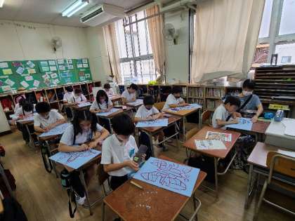 4年2組の図工の様子です。不思議な蝶の版画を作成しています。初めて彫刻刀を使います。先生から「板を動かして」などの細かな助言もあり、集中して活動していました。