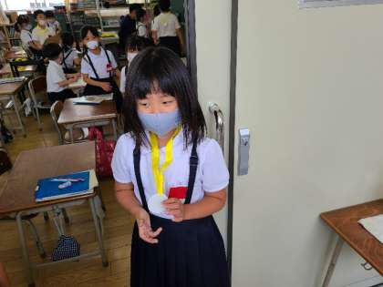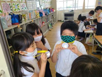 休み時間、子どもたちが「姿勢ペンダント」を見せてくれました。座っている時ペンダントの紐が折れると姿勢が悪いということになります。よい姿勢で学習しましょう。