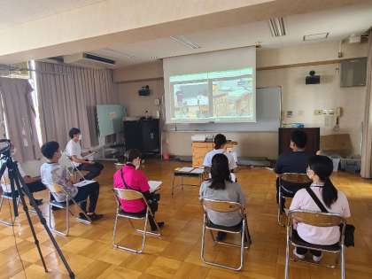 授業研究が密にならないように、Teamsを活用して多目的室で参観ができるようにしています。