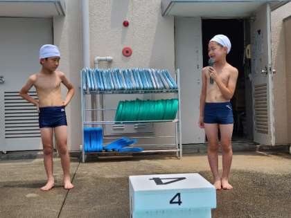 2年生の水遊びの様子です。2年生は天小に入学して初めてのプールです。最初に代表の児童が「プール開き」のあいさつをしっかりしてくれました。