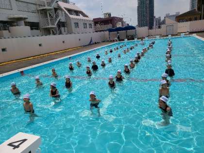 水遊びの活動が始まると、プールでの約束を守り、先生の指示をしっかり聞いていました。