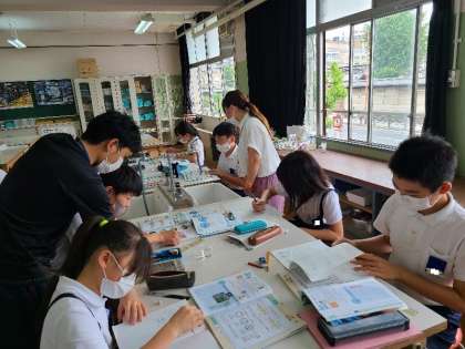 5年2組の理科の様子です。メダカの観察についてまとめています。