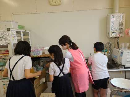保健委員の児童が、液体せっけんの補充を行っています。ありがとう。