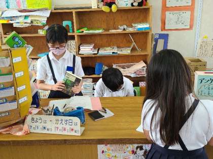 児童朝会で「図書館等で靴を脱いだらそろえましょう」とお話をしました。先生のお話を聞いて早速行動してくれました。
