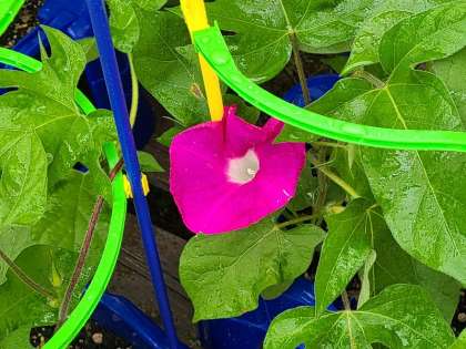 1年生が育てている朝顔の花が咲きました。まだ一つだけでしたが、これからみんなの朝顔も咲くと思います。いっぱい咲いた時の子どもたちの笑顔が楽しみです。