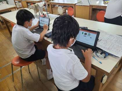 5年生のなかよしの様子です。環境問題について調べ発表する資料を作っています。