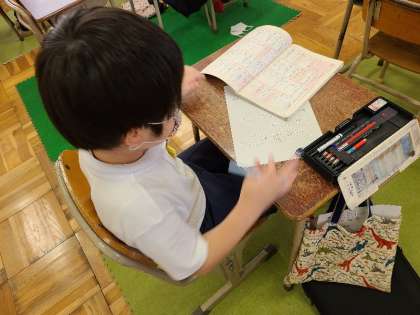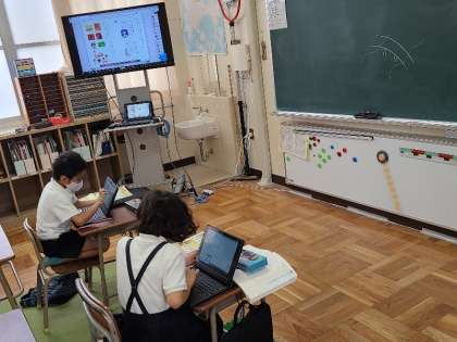 なかよしの様子です。プリント学習やタブレットで学習しています。