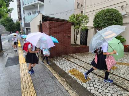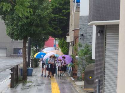 おはようございます。朝から雨になりました。傘をさしての登校です。