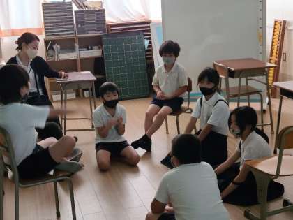 写真下:4年生のなかよしの様子です。楽しくゲームをしていました。