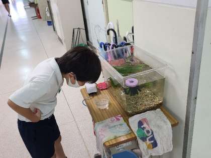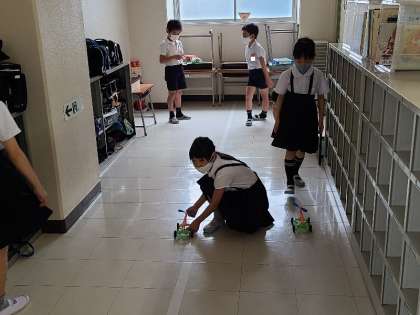 その他にも、メダカの赤ちゃんを観察したり、理科の授業で学習した車で遊んでいました。
