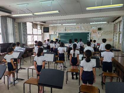 臨時の合唱団が集まりました。天王寺小学校の校歌を録音するために、臨時の合唱団を募ったところ、たくさんの子どもたちが集まりました。今日練習して明日録音予定です。短時間の練習ですが、素晴らしい歌声に変身しました。