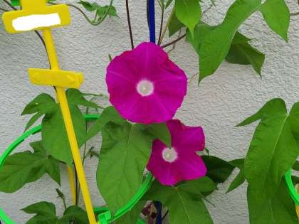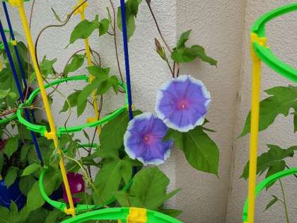 1年生の育てた朝顔が元気に咲いています。